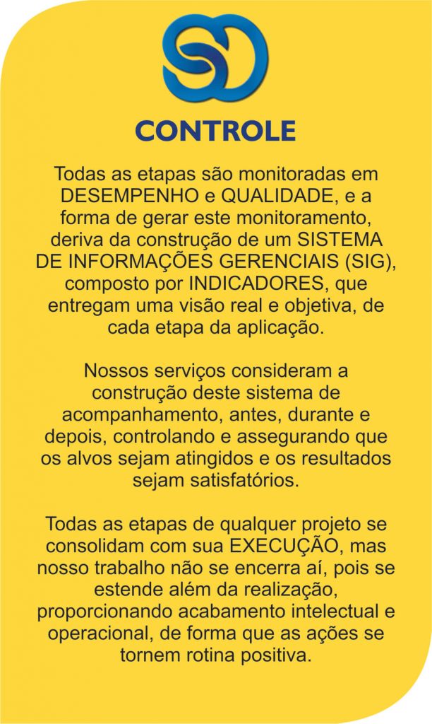 O CONTROLE está em todas as etapas, pois esta é a ferramenta de identificação das ANOMALIAS, sua análise, conhecimento e remediação, de forma que as METAS sejam atingidas, em seus períodos e consistência, para que a micro-realização assegure a macro-realização, e todos saibam em que estágio seus esforços contribuem para a consolidação do sucesso empreendedor.